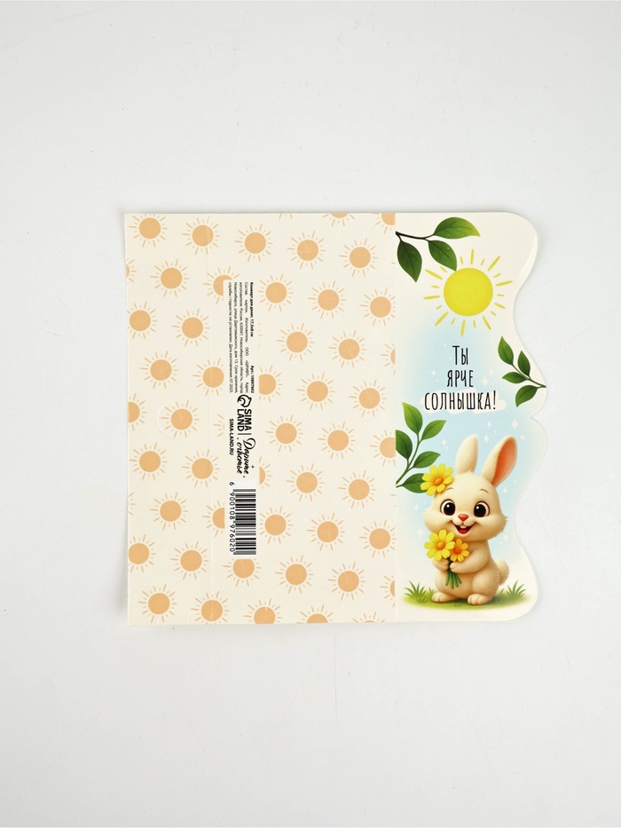 Конверт для денег фигурный «Ты ярче солнышка!», зайчик, 17.5×8 см — Характеристики
