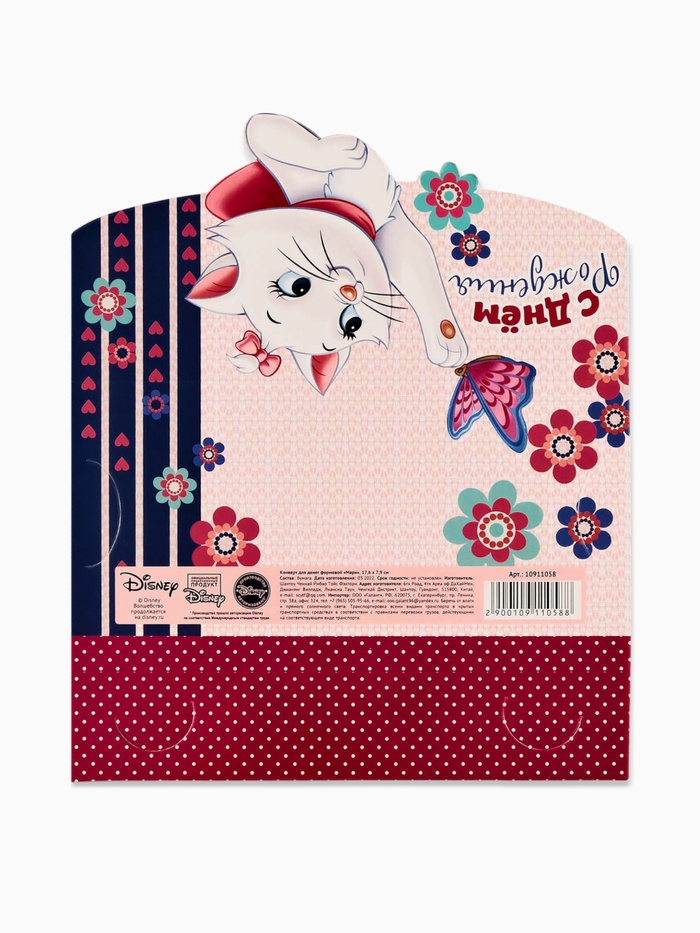Конверт для денег формовой «Кошечка», 17.5 × 8 см — Характеристики