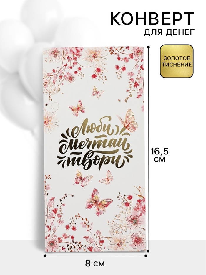 Конверт для денег «Люби, мечтай, твори»72, 16.5×8 см