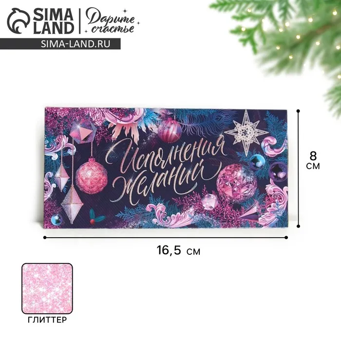 Конверт для денег «Исполнения желаний», глиттер, 16,5 х 8 см