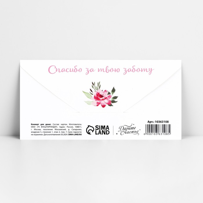 Конверт для денег «Любимой мамочке», 16.5×8 см — Характеристики