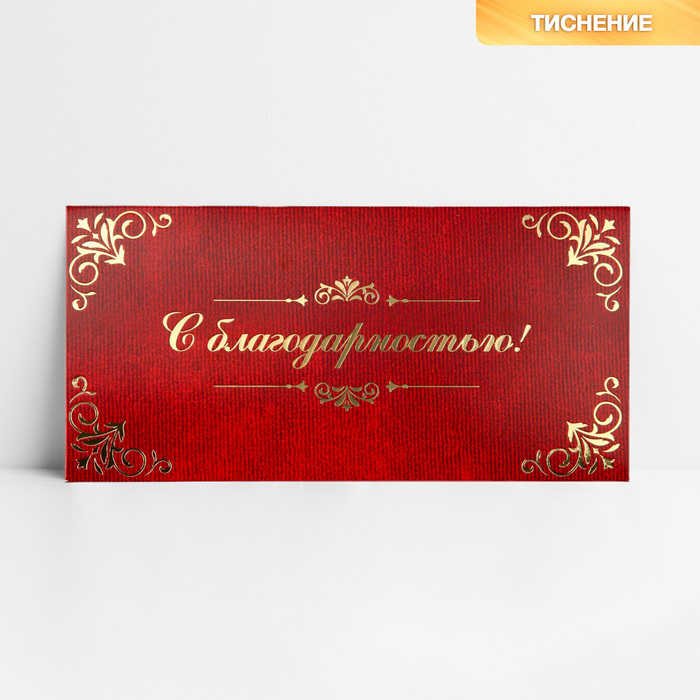 Конверт для денег «С благодарностью», тиснение, 16.5×8 см