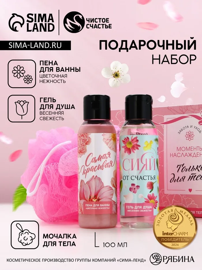 Подарочный набор «Только для тебя», гель для душа и пена для ванны 2×100 мл, мочалка для тела, Чистое счастье