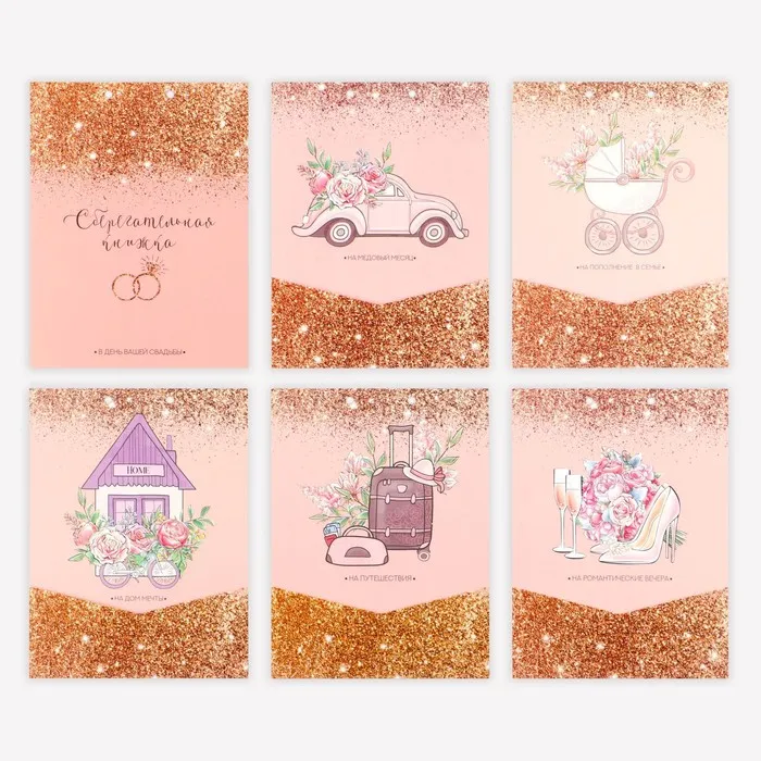 Оригинальная идея для денежного подарка. В этой яркой открытке-сберкнижке - 6 страниц с 5 встроенными карманами для денег, куда необходимо положить выбранную вами сумму. Страницы украшают добрые советы, на что можно потратить денежный подарок.Такой необычный презент позволяет создать целую историю и подарить предвкушение удивительных и чудесных моментов, которые ждут молодоженов впереди. Книга идеальна в качестве как коллективного, так и индивидуального поздравления. В коллекции представлены сберегательные книжки для разных торжественных событий: свадьба, юбилей, день рождения.