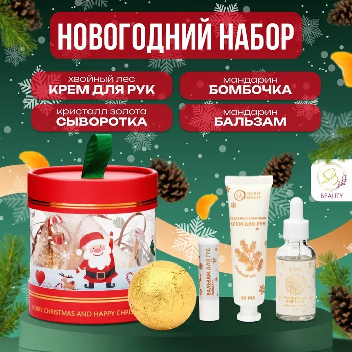Новогодний подарочный набор косметики «Новогоднее омоложение» для душа и ванны, золотая серия. Новый год