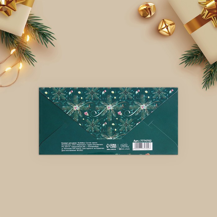 Конверт для денег «Новогодняя ботаника», 16,5 х 8 см — Характеристики