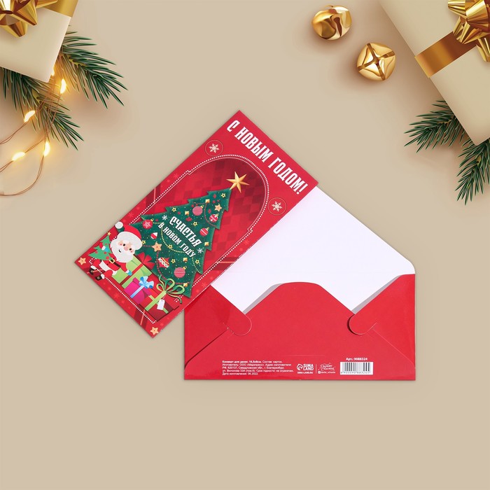 Конверт для денег фигурный «Счастливого нового года», 17.5 х 8 см