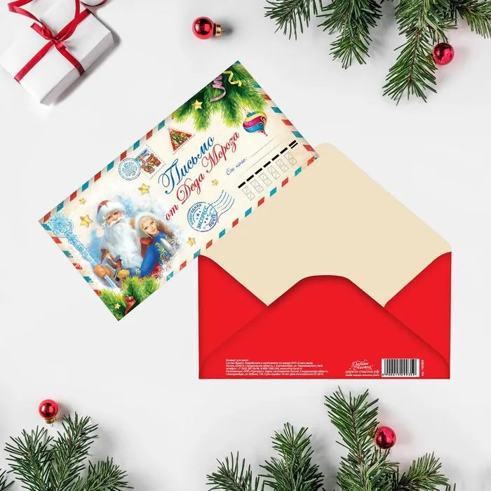 Конверт для денег «Новогодняя почта», письмо от деда мороза, 16.5 х 8 см — Характеристики