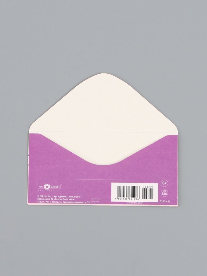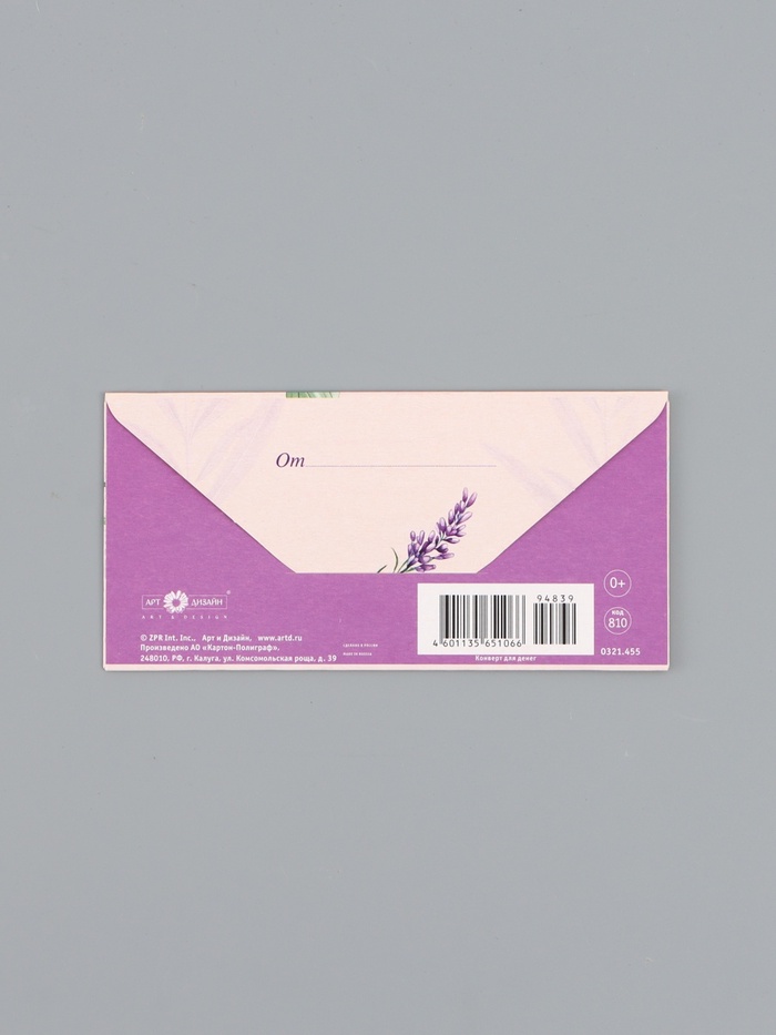 Конверт для денег «Счастья», сиреневый, 16,5 х 8 см
