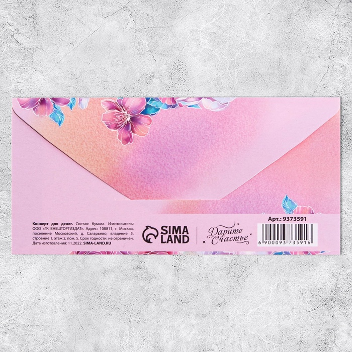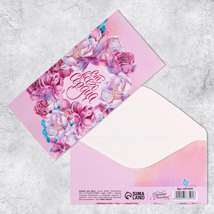 Конверт для денег «От всего сердца», 16.5×8 см — Характеристики