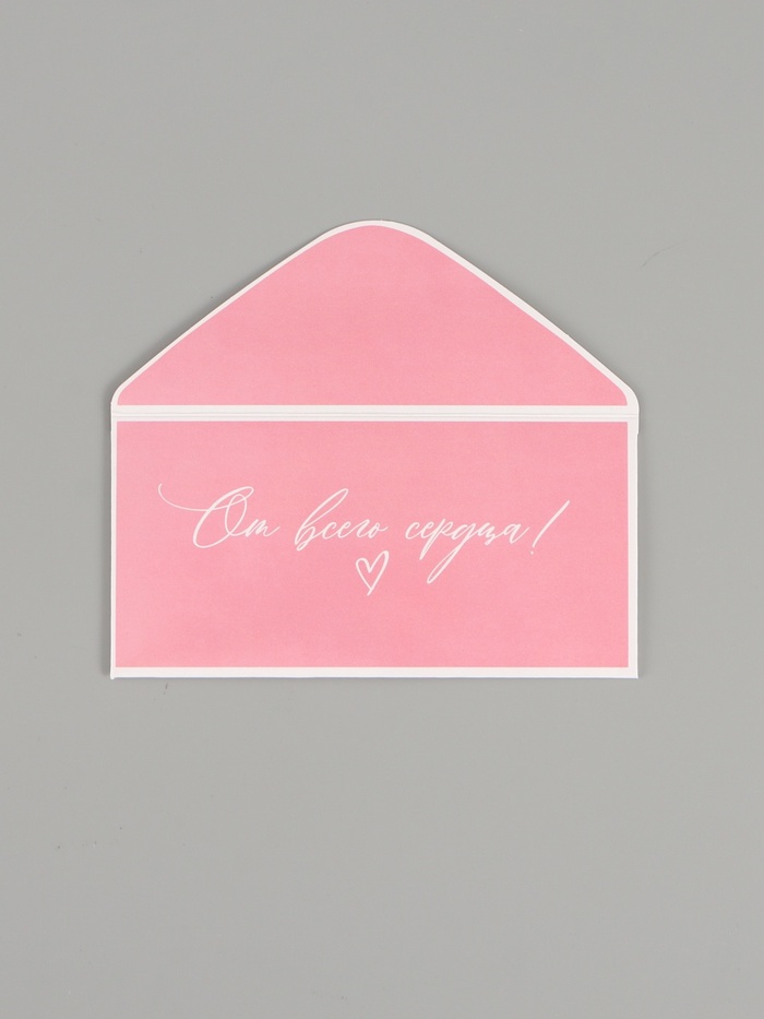 Конверт для денег «От всего сердца!», розовые розы, двусторонний, 16,5 x 8 см