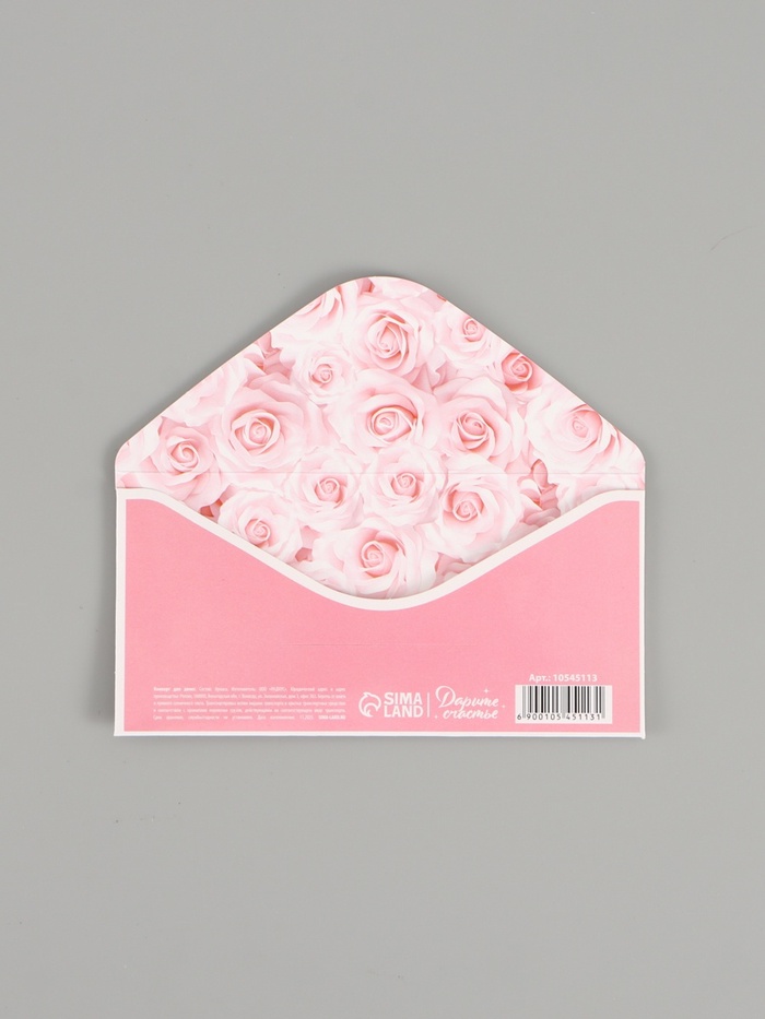 Конверт для денег «От всего сердца!», розовые розы, двусторонний, 16,5 x 8 см — Характеристики
