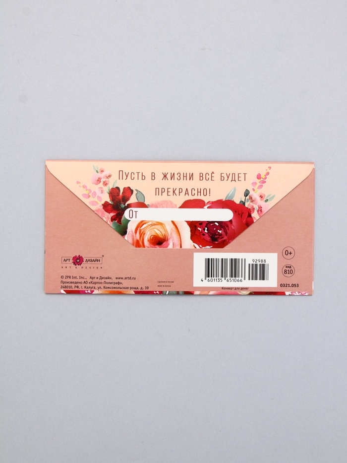 Конверт для денег «Счастья! Любви! Красоты!»65, 16,5 × 8 см