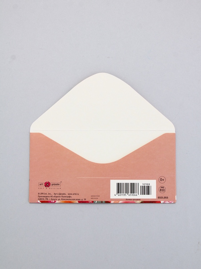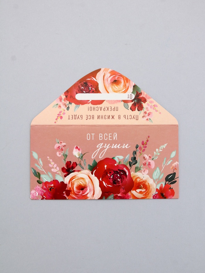 Конверт для денег «От всей души», на розовом, 16,5 х 8 см — Характеристики