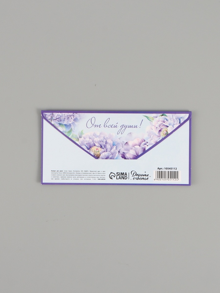 Конверт для денег «От всей души!», цветы, двусторонний, 16,5 x 8 см — Характеристики