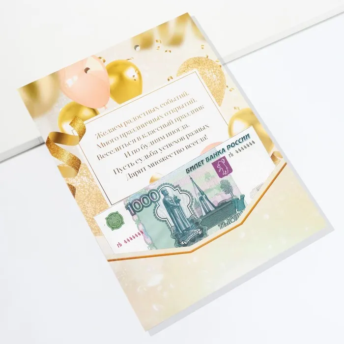 Дизайнерская открытка состоит из 6 листов. На каждой странице с тёплыми пожеланиями располагается индивидуальный конверт. Положите внутрь банкноты — и мечты именинника станут явью. Преподносите денежный подарок оригинально!.