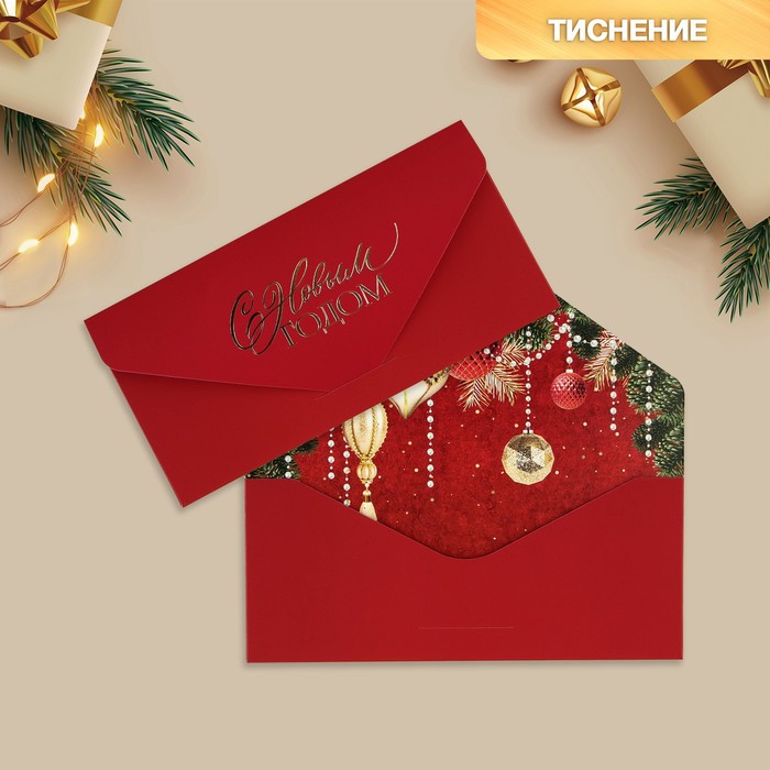 Конверт для денег подарочный «Новогодний шик», софт тач, тиснение, 19×9 см — Характеристики