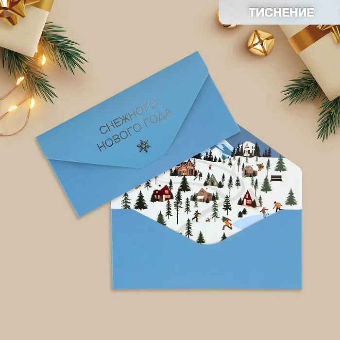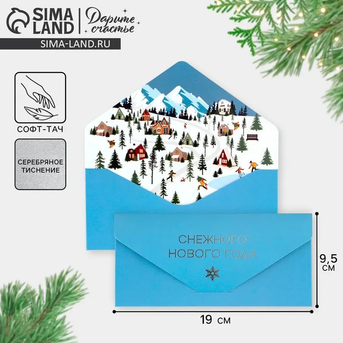 Конверт для денег подарочный «Снежного Нового года», софт тач, тиснение, 19×9 см — Характеристики