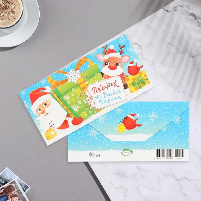 Конверт для денег «Подарок от Деда Мороза» глиттер, конгрев, 16.5×8.5 см — Характеристики