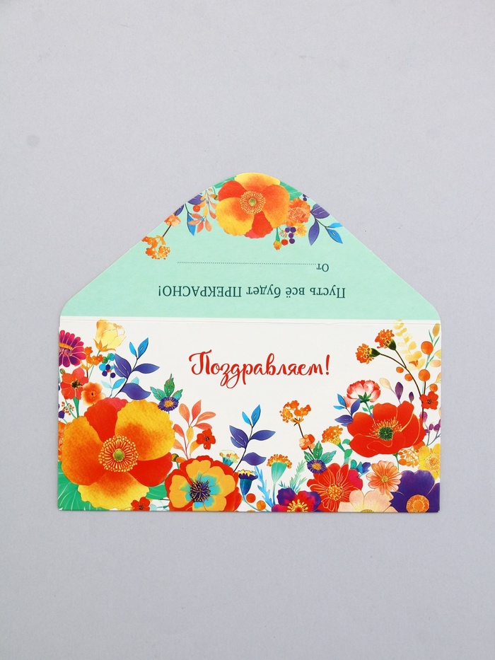 Конверт для денег «Поздравляем!», яркие цветы, 16,5 х 8 см — Характеристики
