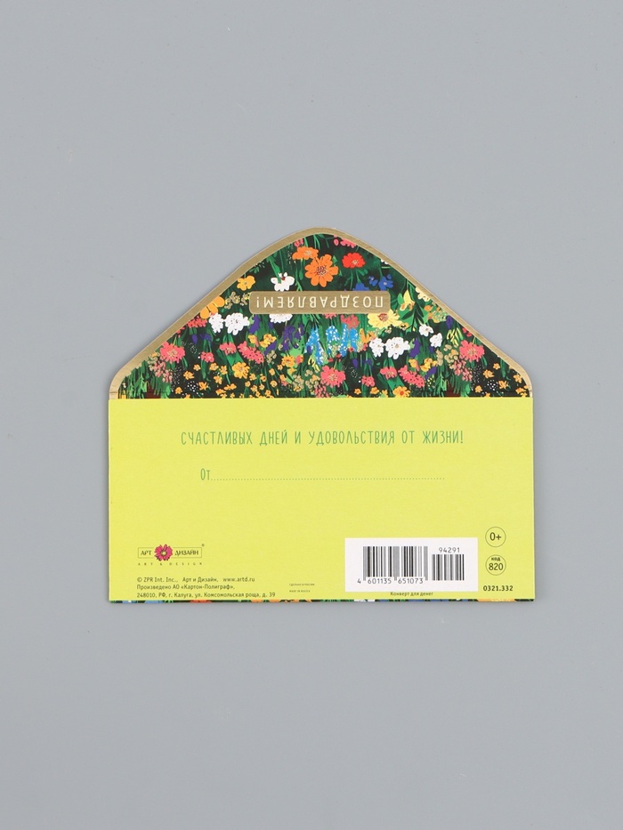 Конверт для денег «Поздравляем!», лужайка, 16,5 х 8 см — Характеристики