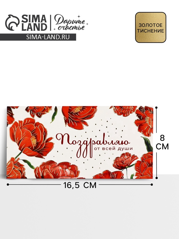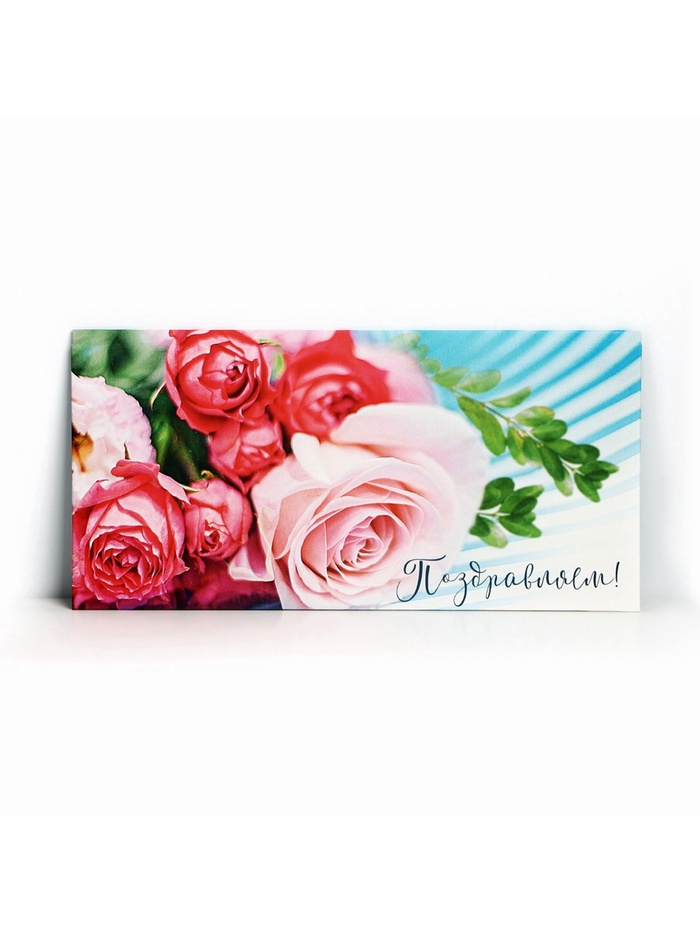 Конверт для денег «Поздравляем!», розовый букет, 16.5×8 см — Характеристики