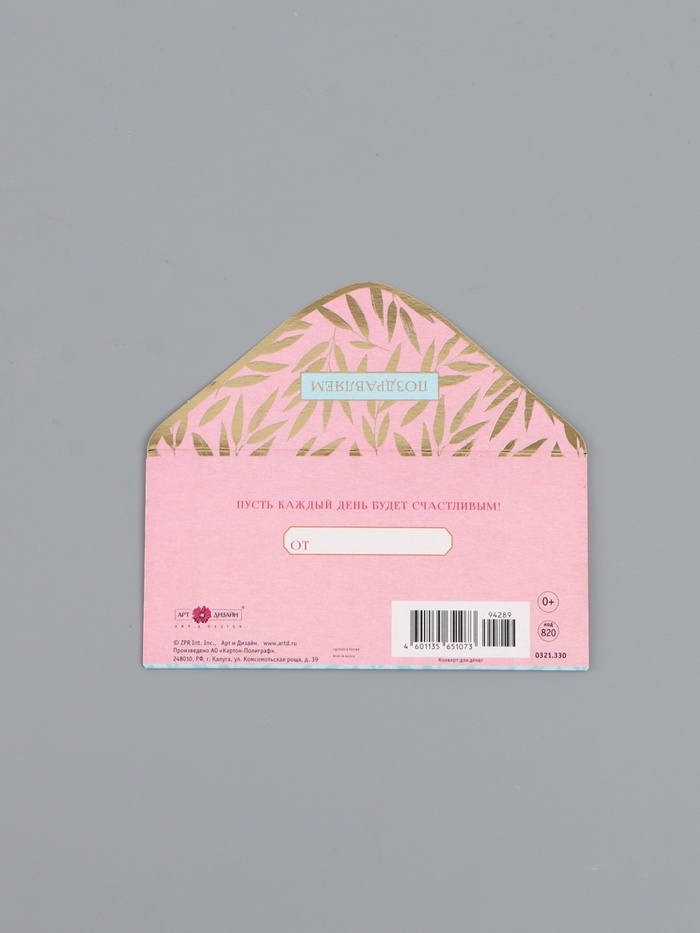 Конверт для денег «Поздравляем», розовый и голубой, 16,5 х 8 см — Характеристики