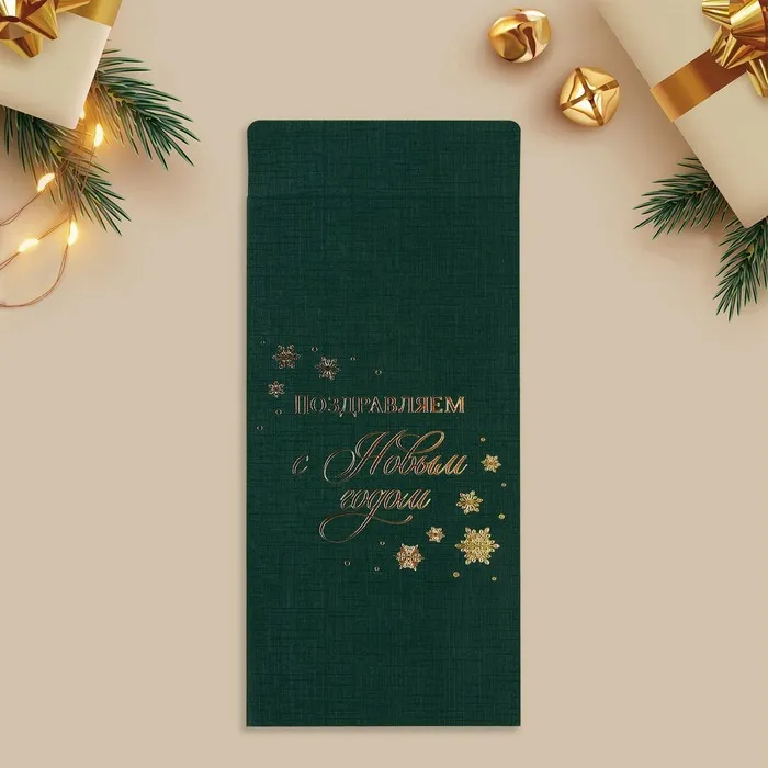 Конверт для денег, «Поздравляем с Новым годом», тиснение, дизайнерская бумага, 11 х 22 см — Характеристики