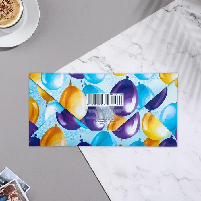 Конверт для денег "Поздравляем!" шары, 16х8 см — Характеристики