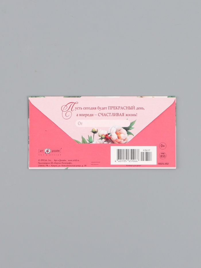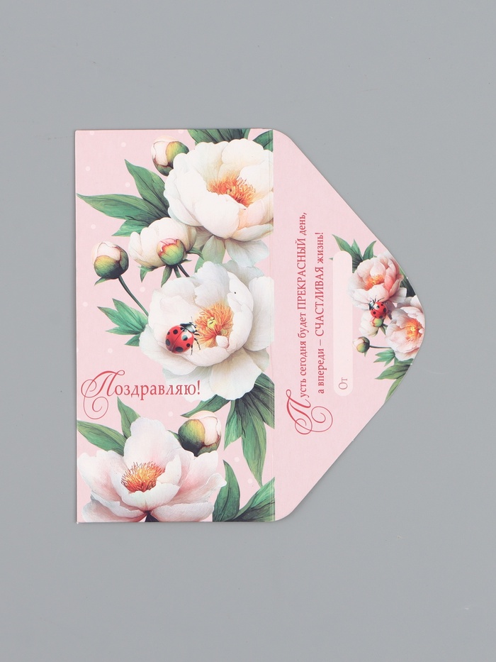 Конверт для денег "С Днём Рождения!" пионы, 16х8 см