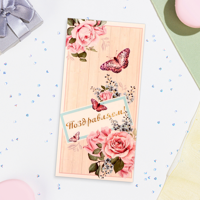 Конверт для денег «Поздравляю», нежные цветы, двусторонний, 16,5 x 8 см — Характеристики