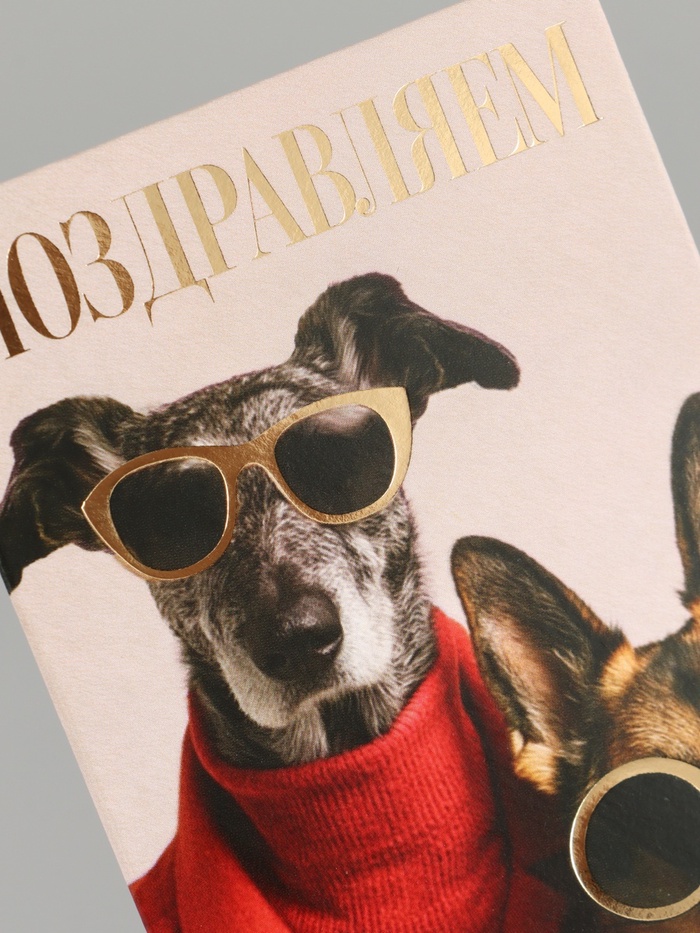 Конверт для денег «Поздравляю», пёсики, тиснение, 16.5×8 см — Характеристики