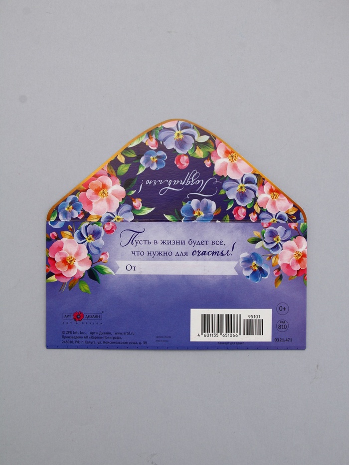 Конверт для денег «Поздравляю!», синий, 16,5 х 8 см — Характеристики