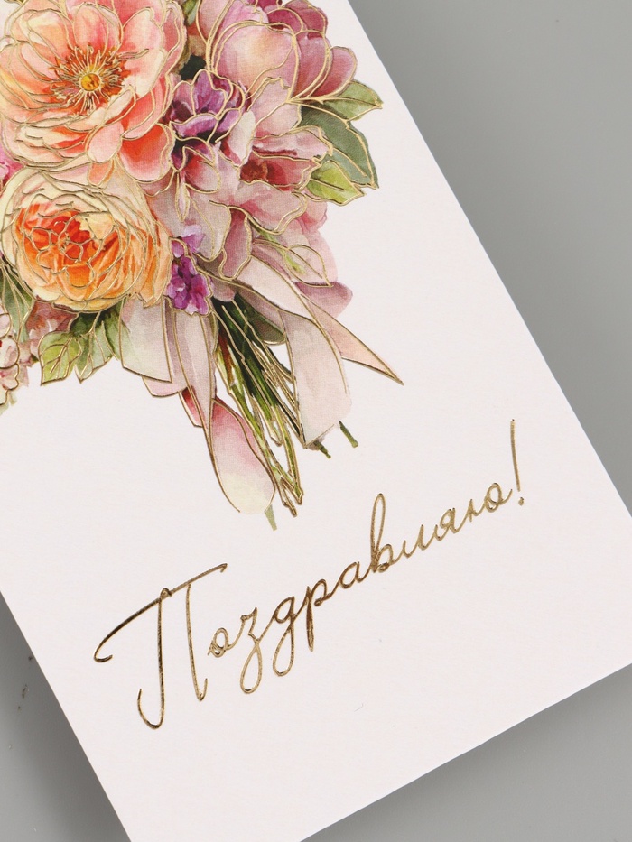 Конверт для денег «Поздравляю», цветы, тиснение, 16.5×8 см — Характеристики