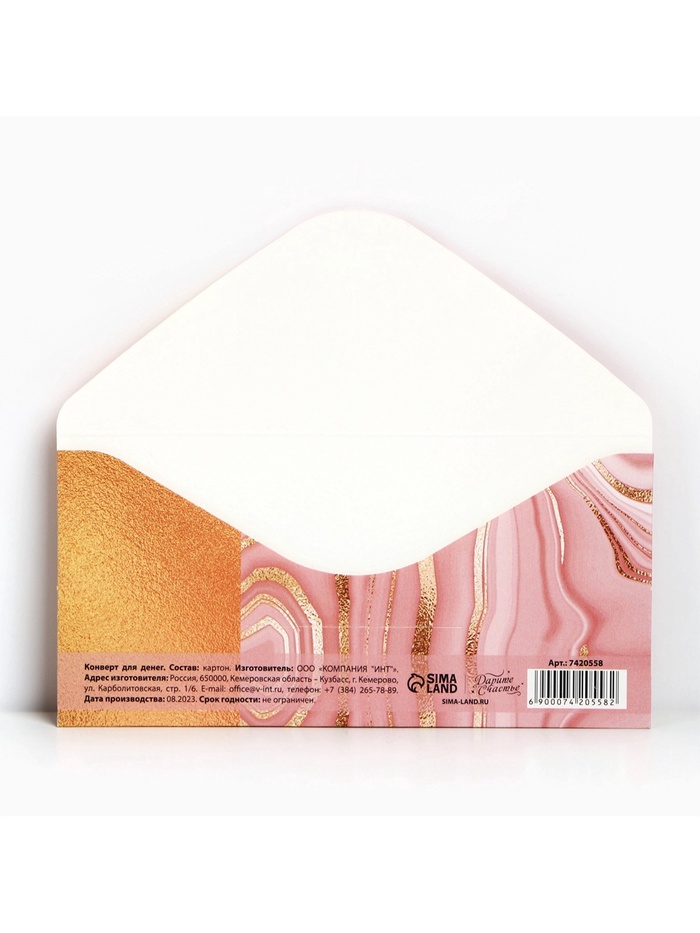 Конверт для денег «Розовый мрамор», 16,5 × 8 см — Характеристики