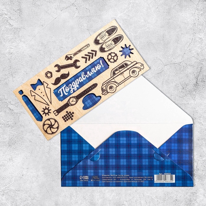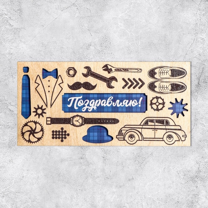 Конверт для денег с деревянным элементом «Поздравляю!», 16.5×8 см — Характеристики