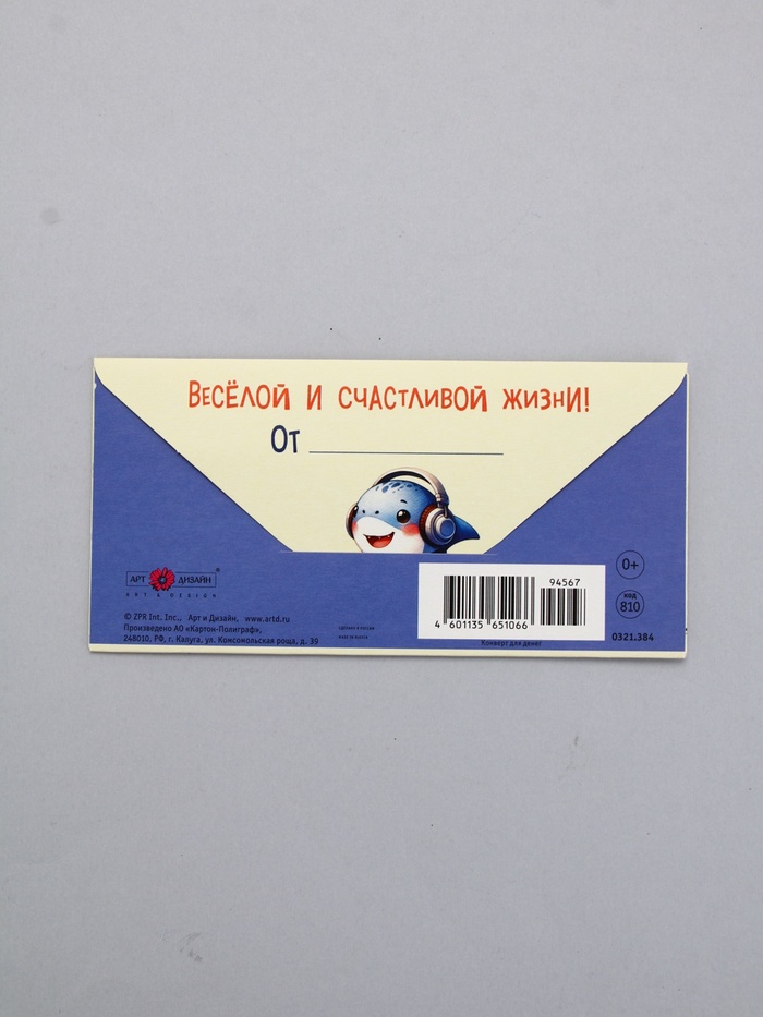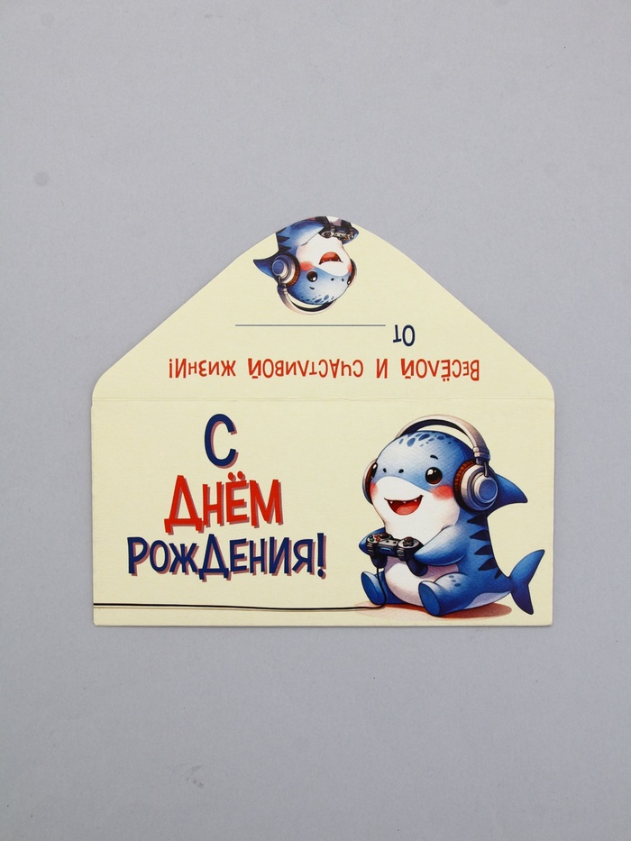 Конверт для денег «С Днем Рождения!», акула, 16,5 х 8 см — Характеристики
