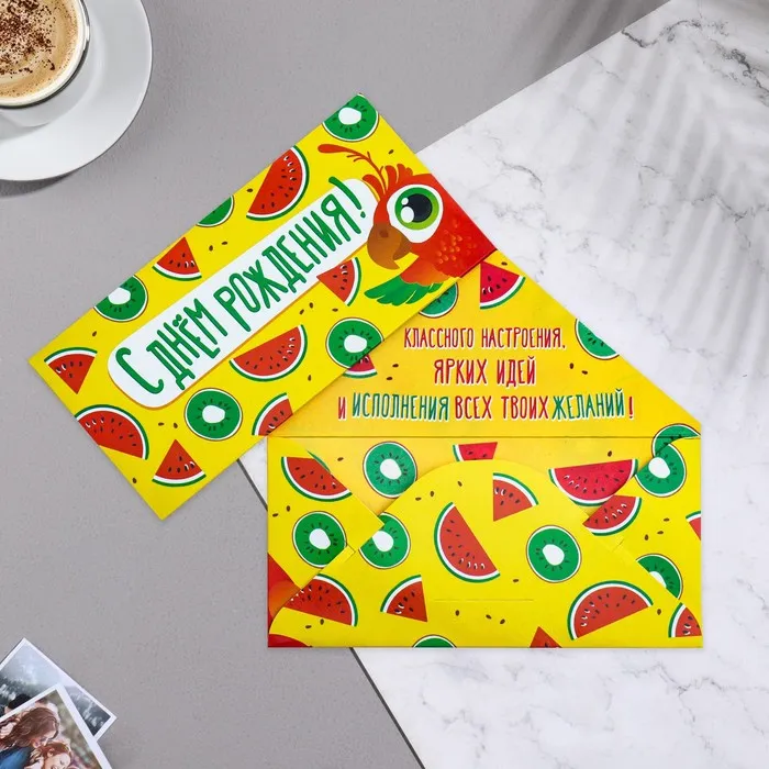 Конверт для денег "С Днем Рождения!" арбуз, 16х8 см — Характеристики
