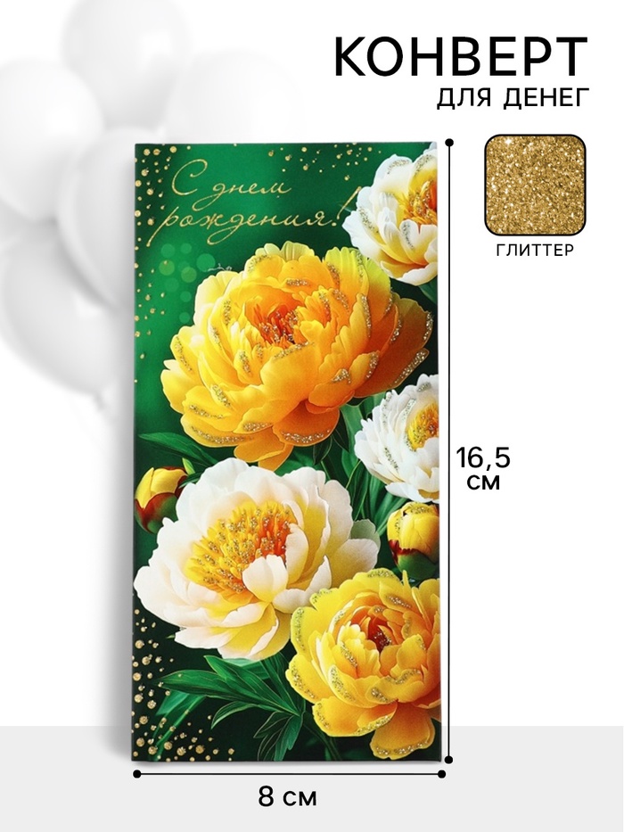 Конверт для денег «С днем рождения!»5, глиттер, 16,5 × 8 см