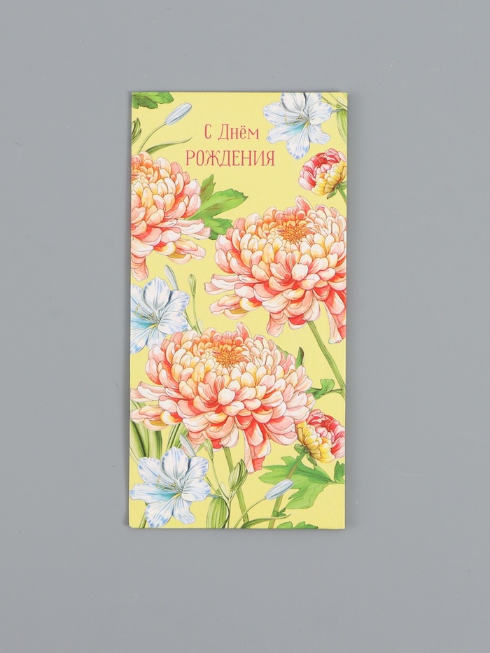 Конверт для денег «С днём рождения», цветочки на жёлтом, 16,5 х 8 см