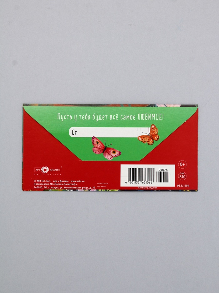 Конверт для денег «С Днем Рождения», нежные цветы, частичный УФ-лак, 16.5×8 см