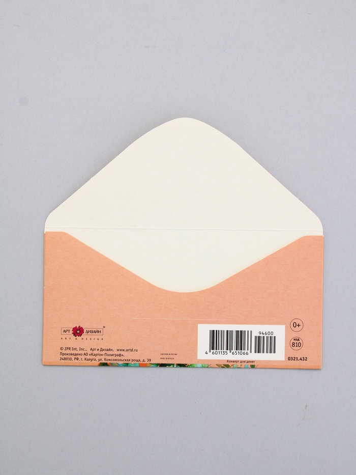 Конверт для денег «С Днем Рождения!», персиковый, 16,5 х 8 см — Характеристики