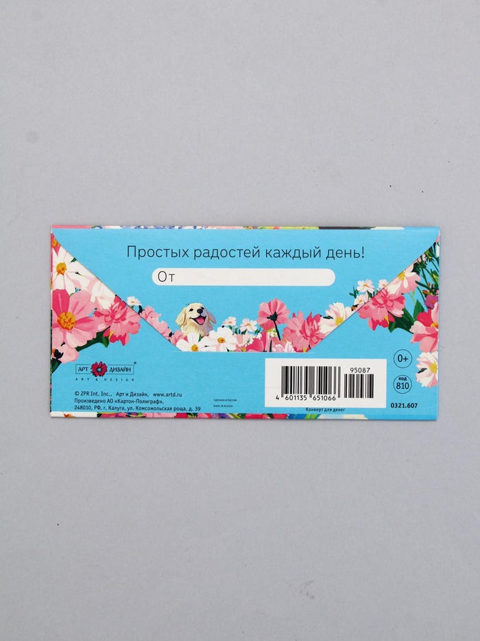 Конверт для денег «С Днем Рождения!», пёсик, 16,5 х 8 см — Характеристики