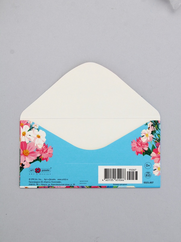 Конверт для денег «В День Рождения!», пионы, 16,5 х 8 см