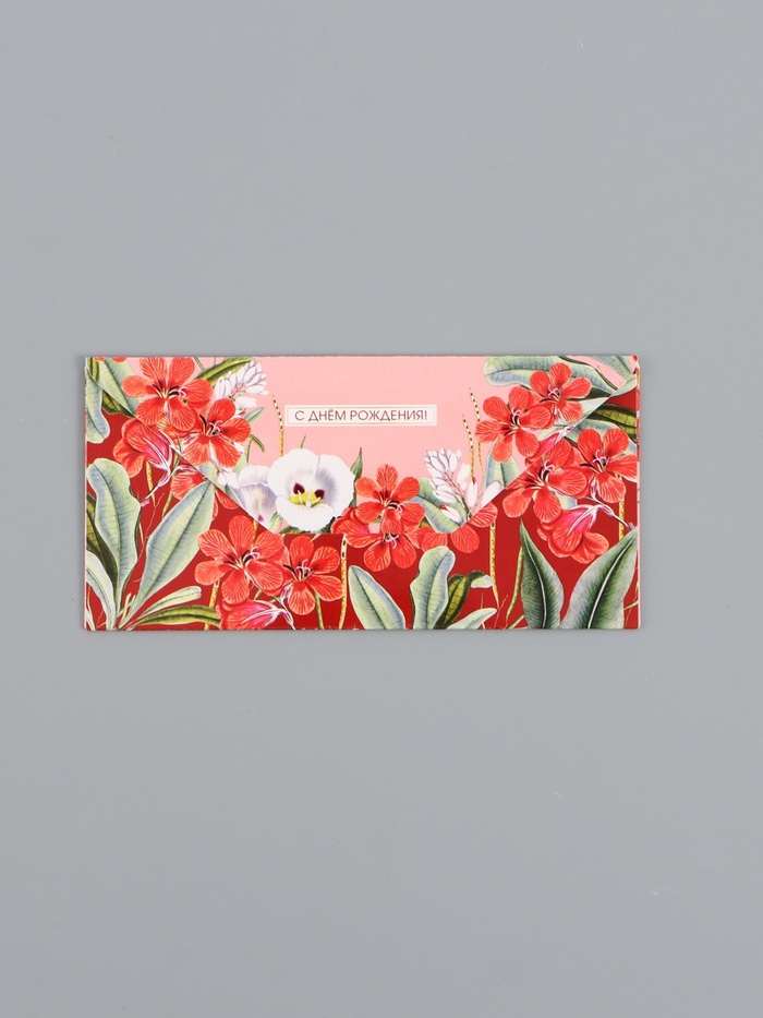 Конверт для денег «С днём рождения», красные цветы, 16,5 х 8 см