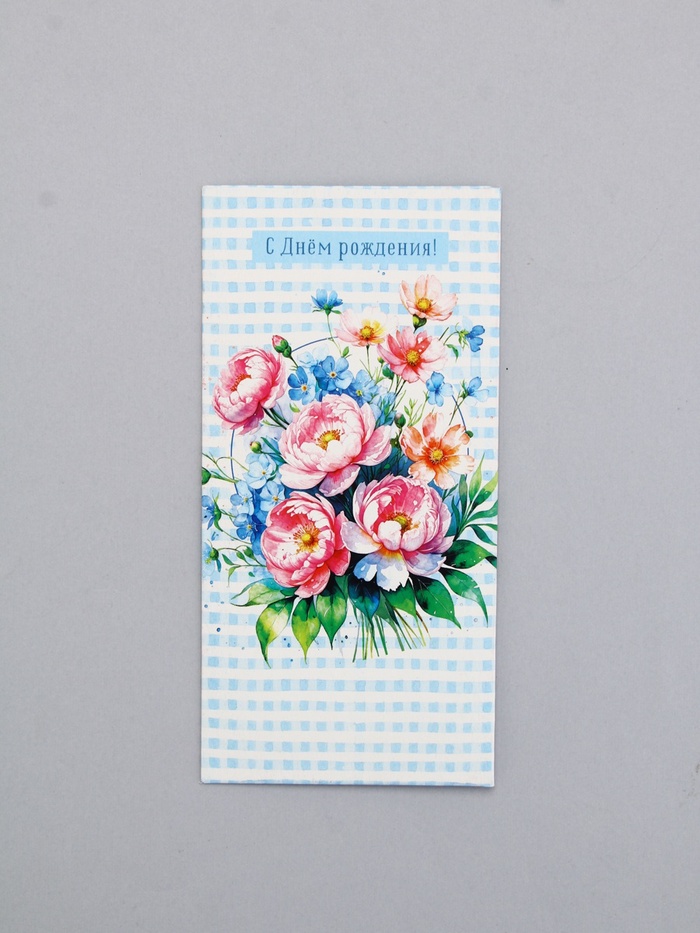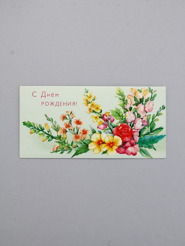 Конверт для денег «С днём рождения», букет, 16,5 х 8 см