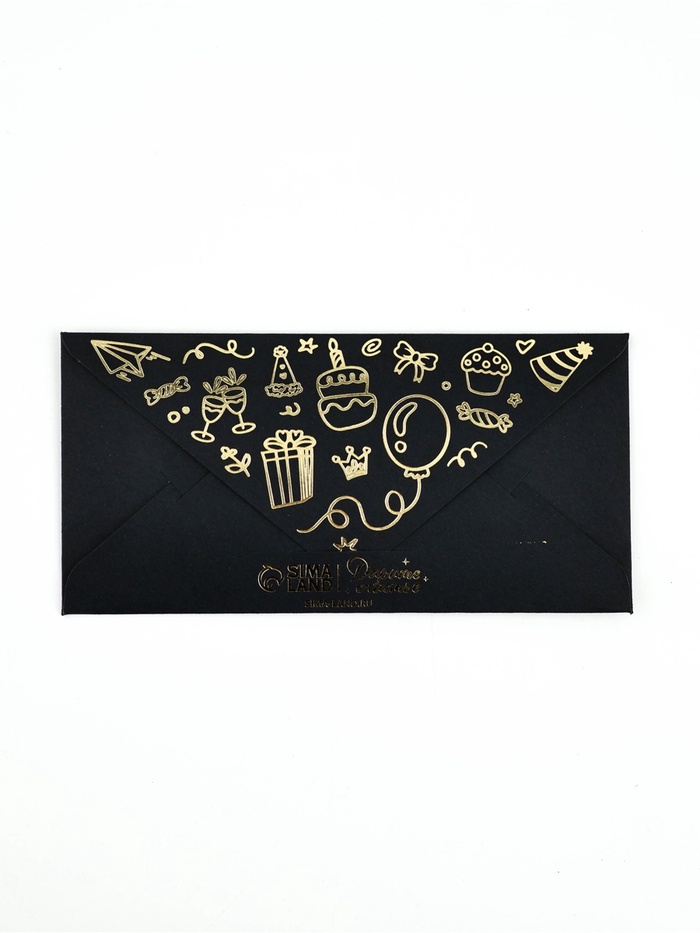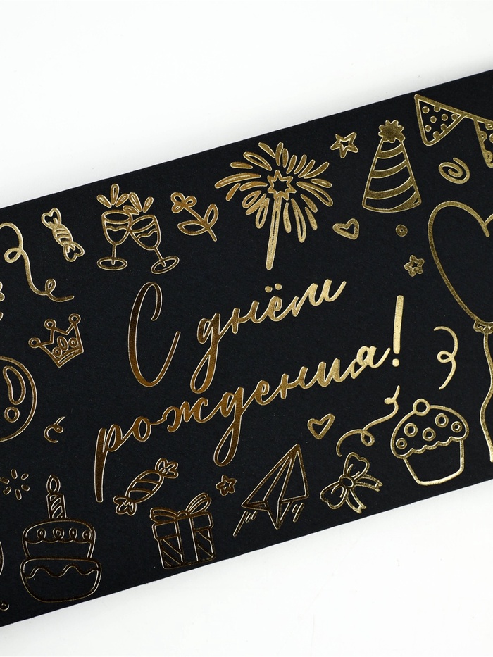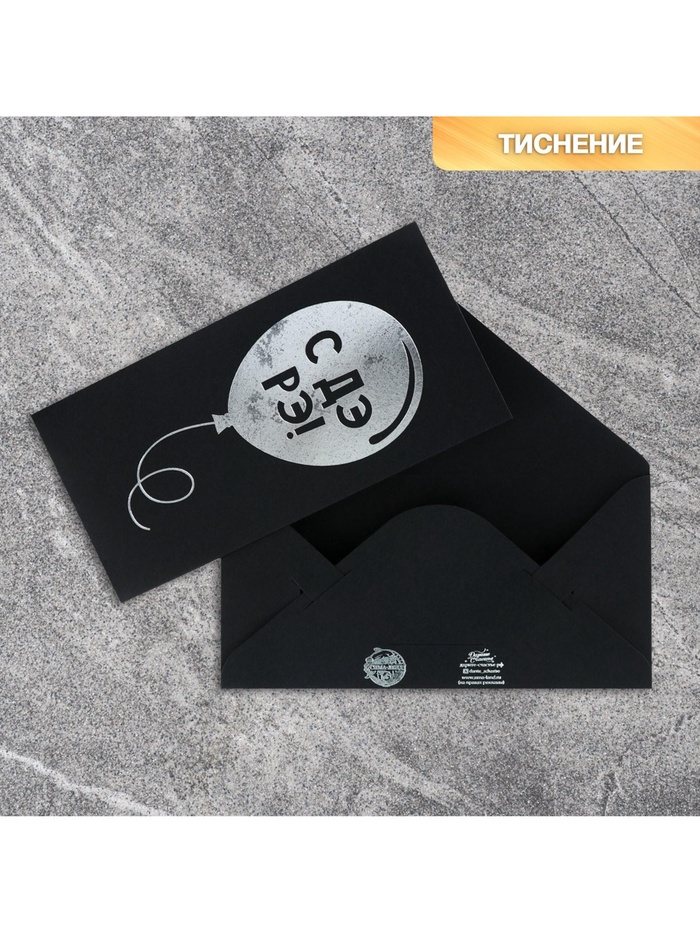 Конверт для денег «С днём рождения», 16.5×8 см, тиснение, чёрный крафт — Характеристики