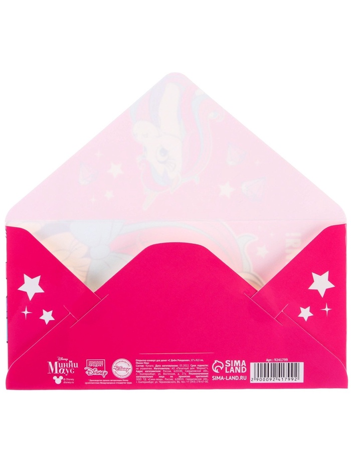 Конверт для денег, 16.5 х 8 см «Лучшей подружке», Минни Маус