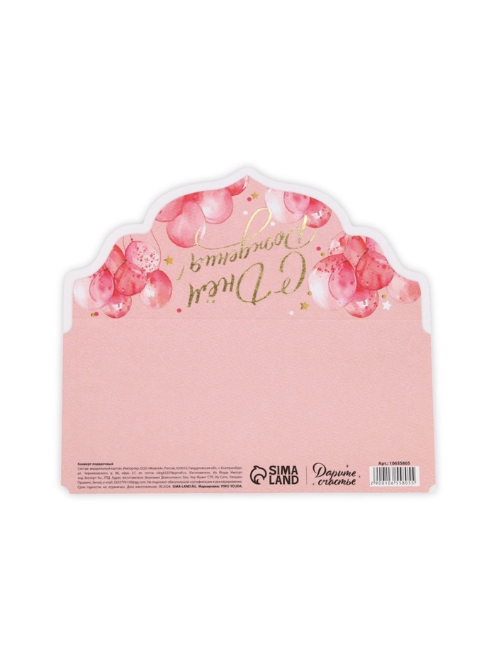 Конверт для денег «С днём рождения!», акварельный картон, тиснение, конгрев 19×9 см — Характеристики