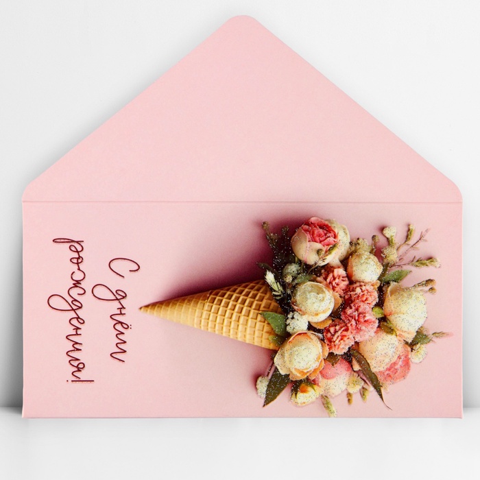 Конверт для денег «С днём рождения», букет, глиттер, 16.5×8 см — Характеристики